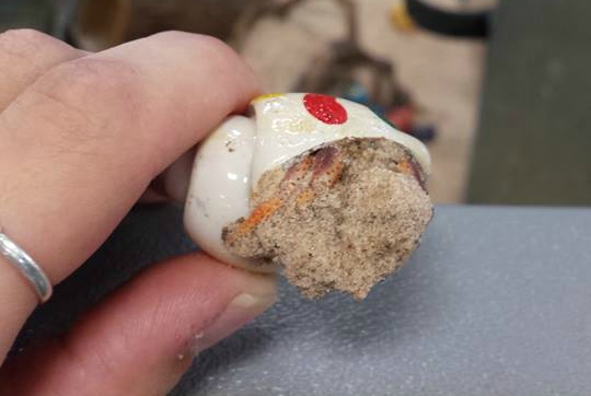 Moisten the sand with treated dechlorinated fresh water treated with conditioners such as Kordon Amquel Plus and Seachem Prime. The sand should have a “sand castle” consistency. Enough moisture allows your Hermit to create tunnels and caves to molt, de-stress or tunnel around doing “crab stuff”. If the sand is over watered to a “slushy” consistency, it is useless to your Hermit!